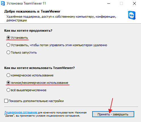 2. Открываем установщик. Ставим маркер на «Установить» и «Личное/Некоммерческое использование»