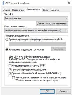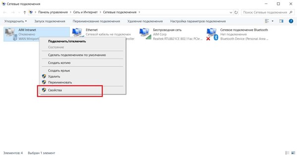 10. Ищем в списке наше VPN подключение AIMIntranet и открываем свойства данного подключения: