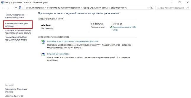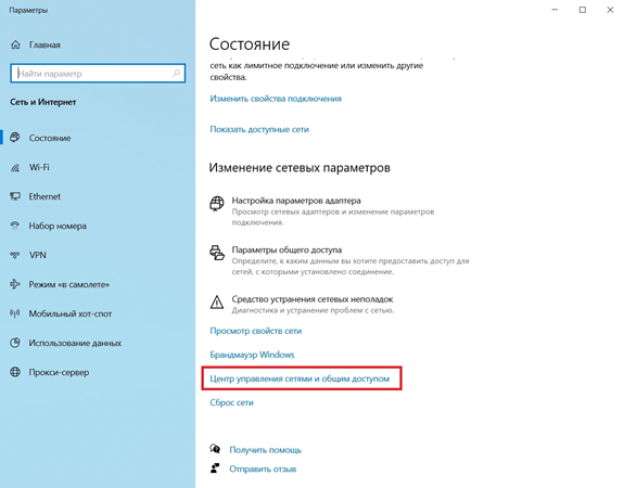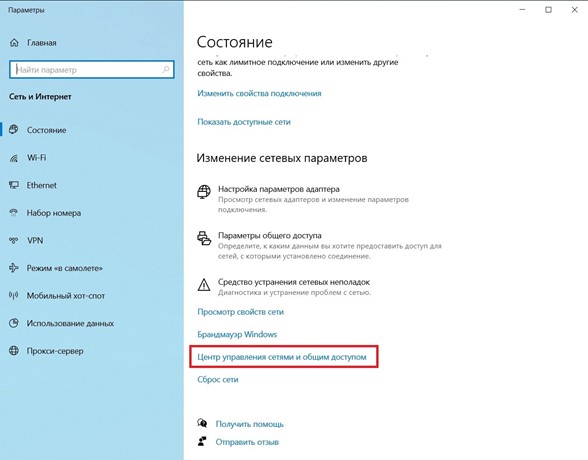 8. Заново заходим в Центр управления сетями и общим доступом:
