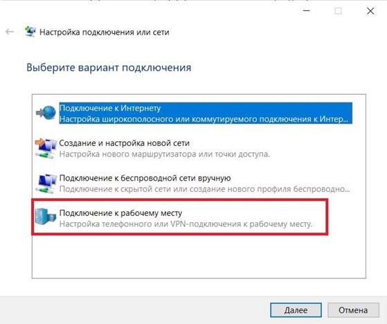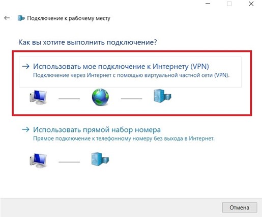 6. Из списка выбираем Использовать мое подключение к Интернету (VPN) :