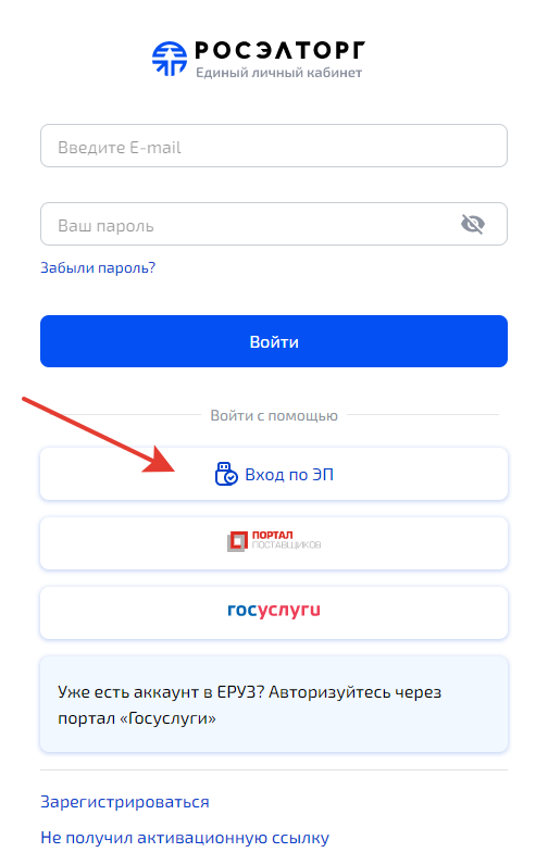 Для того, чтобы уведомления не приходили на почтовые ящики, необходимо войти в личный кабинет Росэлторг по ссылке — https://lk.roseltorg.ru/auth с использованием электронной цифровой подписи физического лица (далее — ЭЦП) (рис. 2)