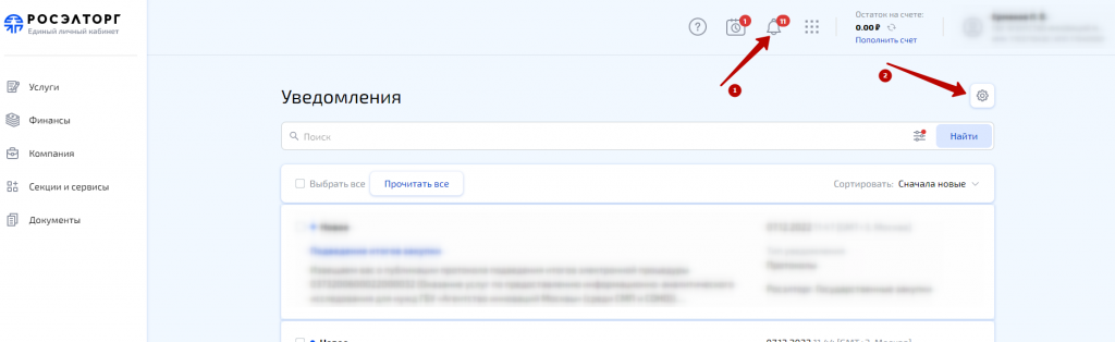 В личном кабинете мы нажимаем на знак «звонка» в правом верхнем углу и открываем настройки уведомлений (рис. 3)