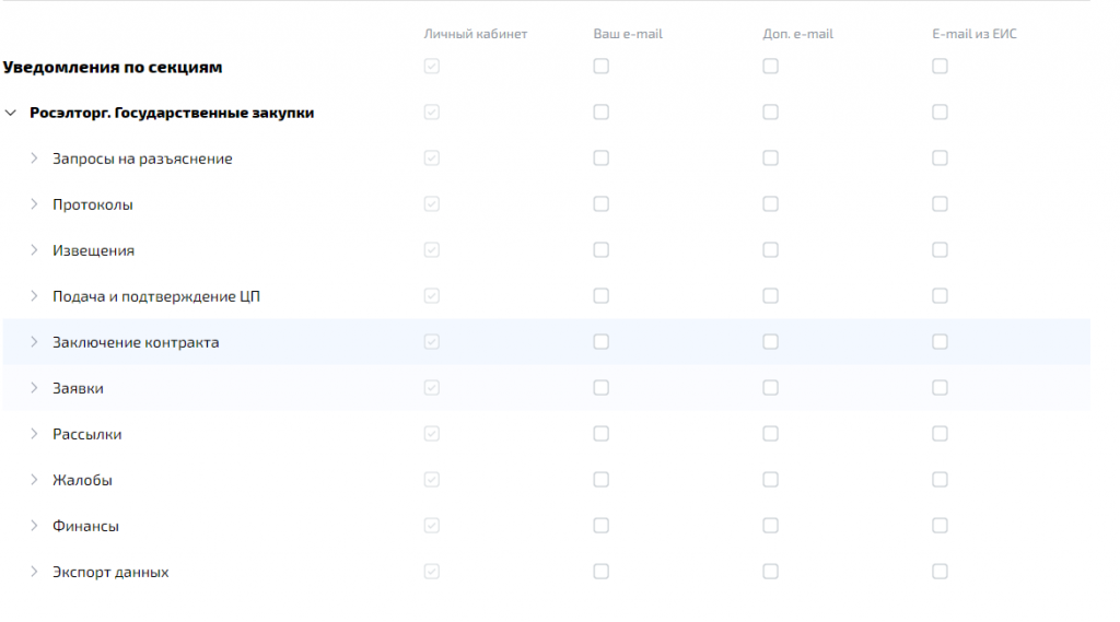 После этой процедуры уведомления в виде писем на почтовый ящик, указанный в профиле личного кабинета Росэлторг, не попадут.