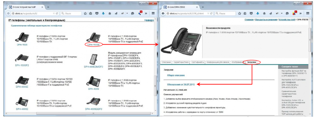 Заходим на сайт dlink.ru, раздел «Продукты» ->»Устройства Volp». Далее выбираем нужную модель по изображению.