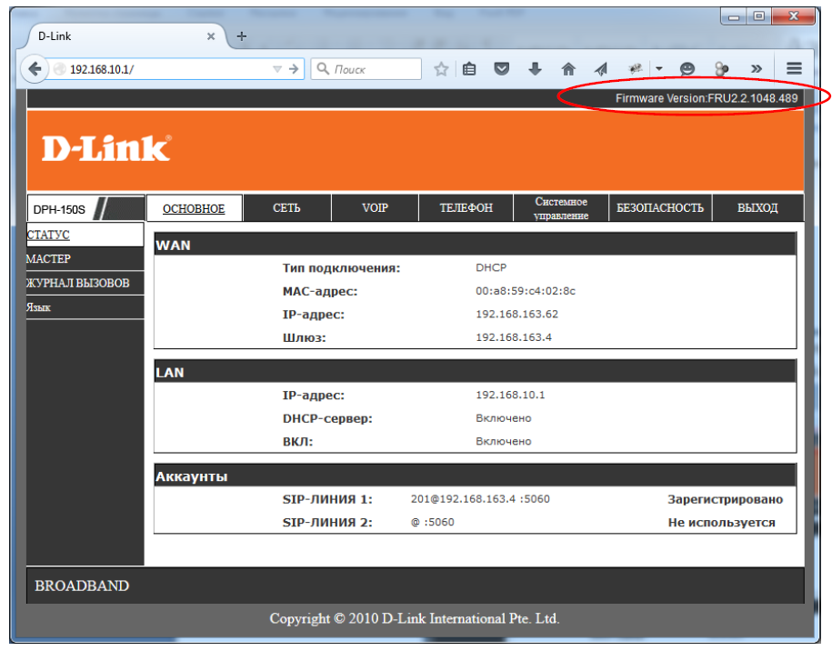 4. Заходим на WEB-интерфейс устройства по IP-телефона.