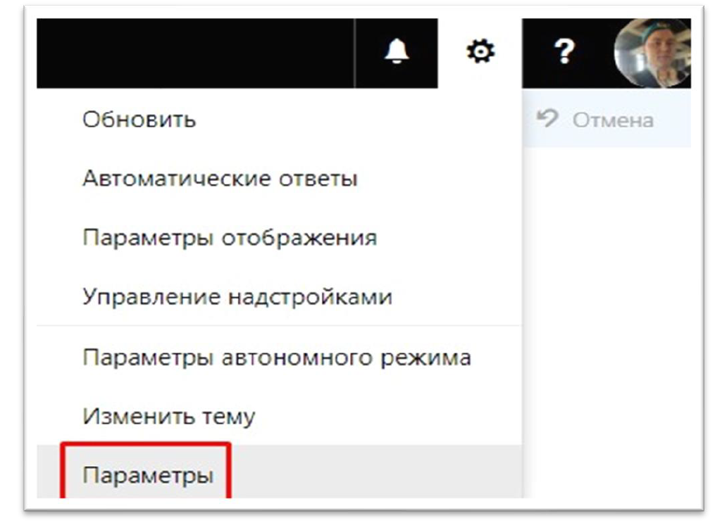 - Заходим в почтовый ящик и переходим в «Параметры»