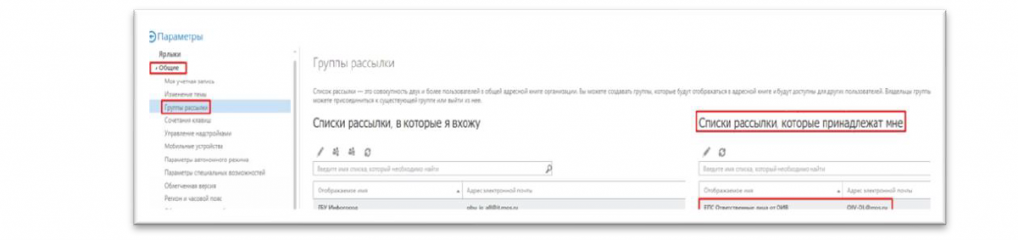 2. В разделе «Общие» выбираем раздел «Списки рассылки которые принадлежат мне».