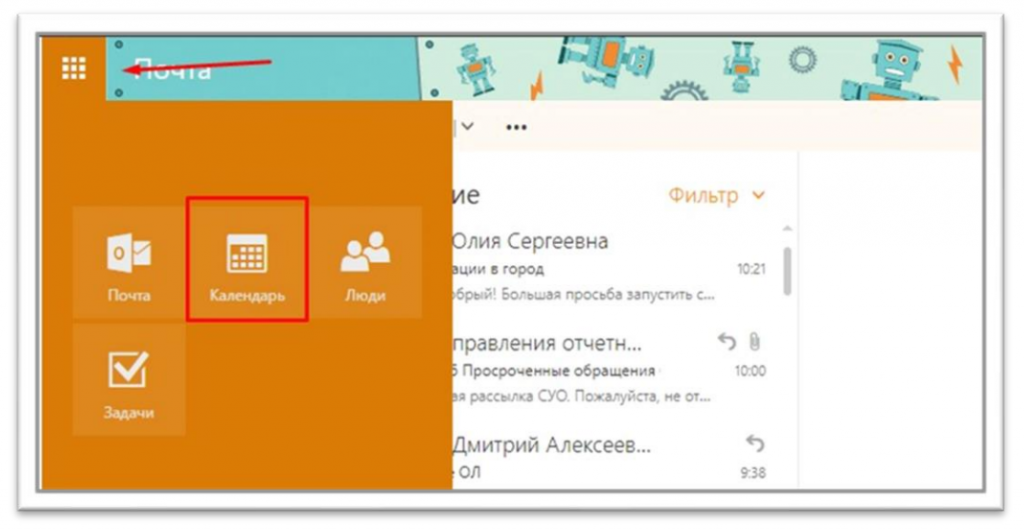 1. Перейдите в раздел «Календарь»
