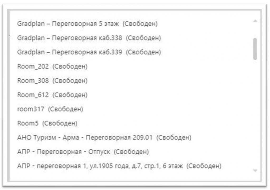 Рисунок 10 — список переговорных комнат