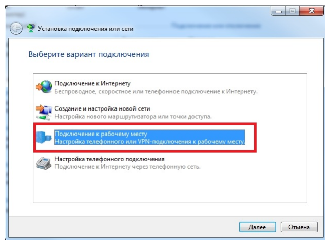 4. Выбираем из списка «Подключение к рабочему месту».