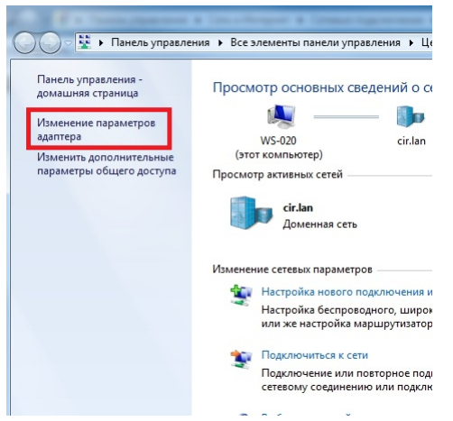 9. Далее заходим в «Изменение параметров адаптера».