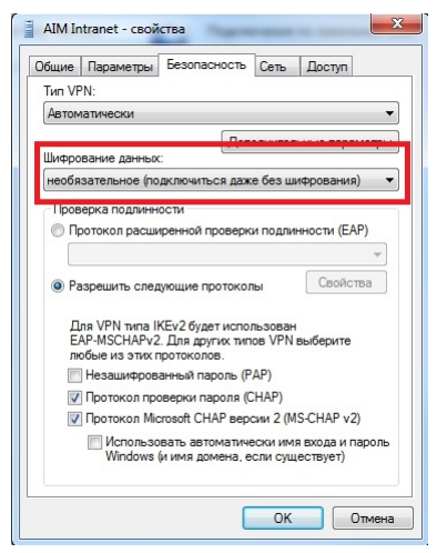 выбираем «Необязательное (подключение даже без шифрования).»