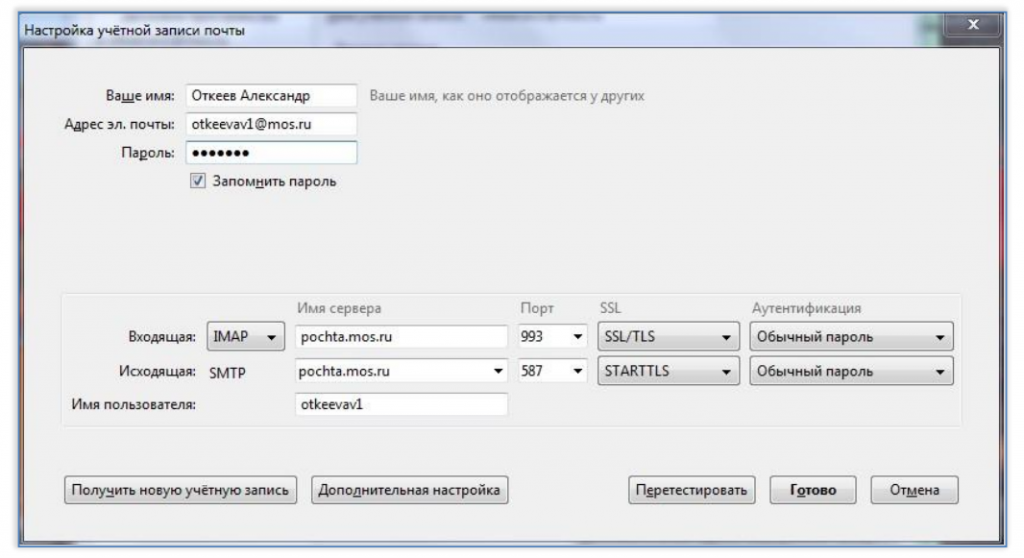 Сервер IMAP: pochta.mos.ru