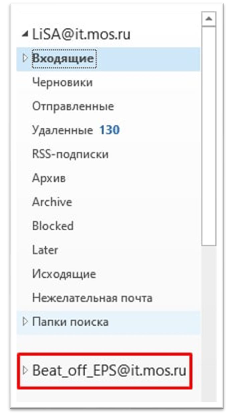 В версиях почтовых клиентов Microsoft Outlook 2010, 2013, 2016, 2019 (настроенных по протоколу Microsoft Exchange) почтовый ящик без пароля, на который предоставлены права, добавится автоматически в списке почтовых ящиков.