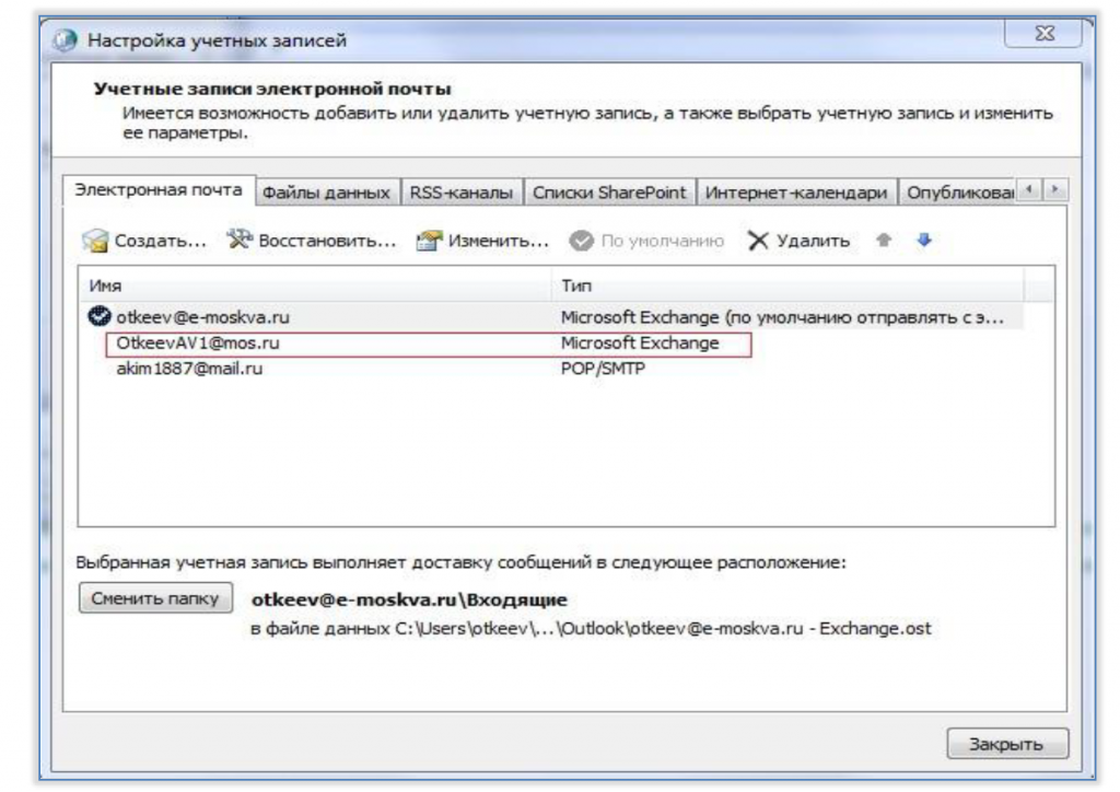 Для настройки общего почтового ящика ЕПС ПМ в Outlook при отсутствии персонального ящика ЕПС ПМ необходимо выполнить следующие действия