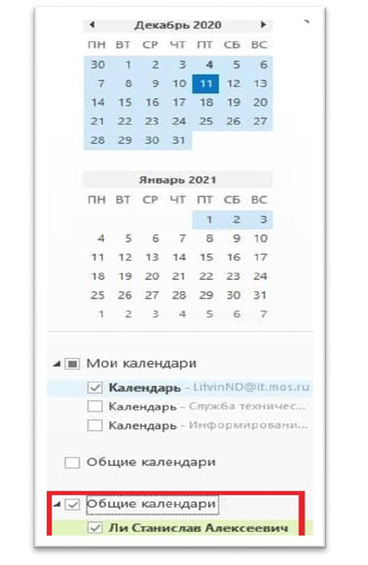 2. Клиент автоматически перейдет во вкладку «Календарь» что можно будет увидеть в «Общих календарях».