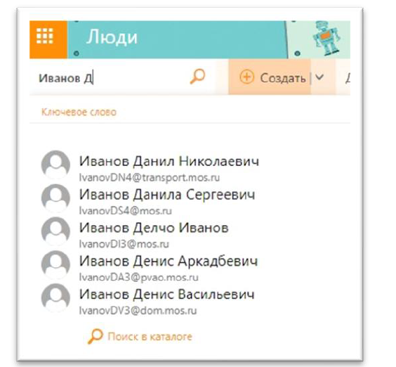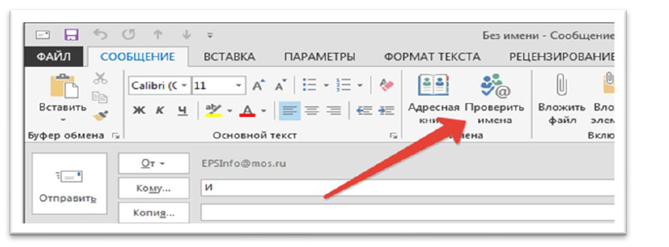 Поиск выполняется только в открытой адресной книге. Если Вы уже открыли новое сообщение, Вы можете ввести имена людей, которым Вы хотите отправить сообщение, в полях «Кому» или «Копия». После ввода имени нажать «Проверить имена».