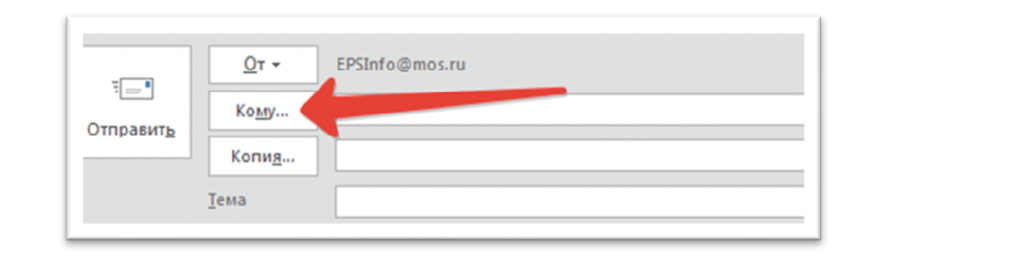 - В окне нового сообщения щелкните поле «Кому» или «Копия»