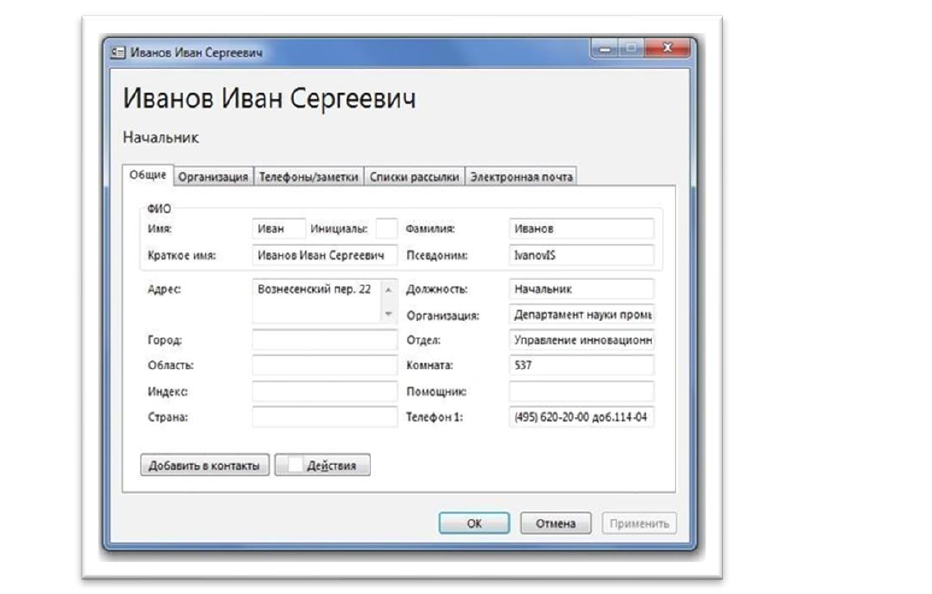 Работа с адресной книгой в Microsoft Outlook