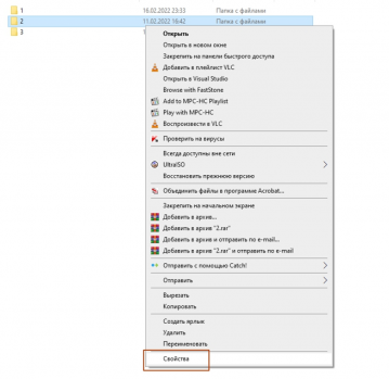 2. Нажимаем правой кнопкой мыши на сетевую папку, к которой необходимо предоставить доступ и открываем «свойства»