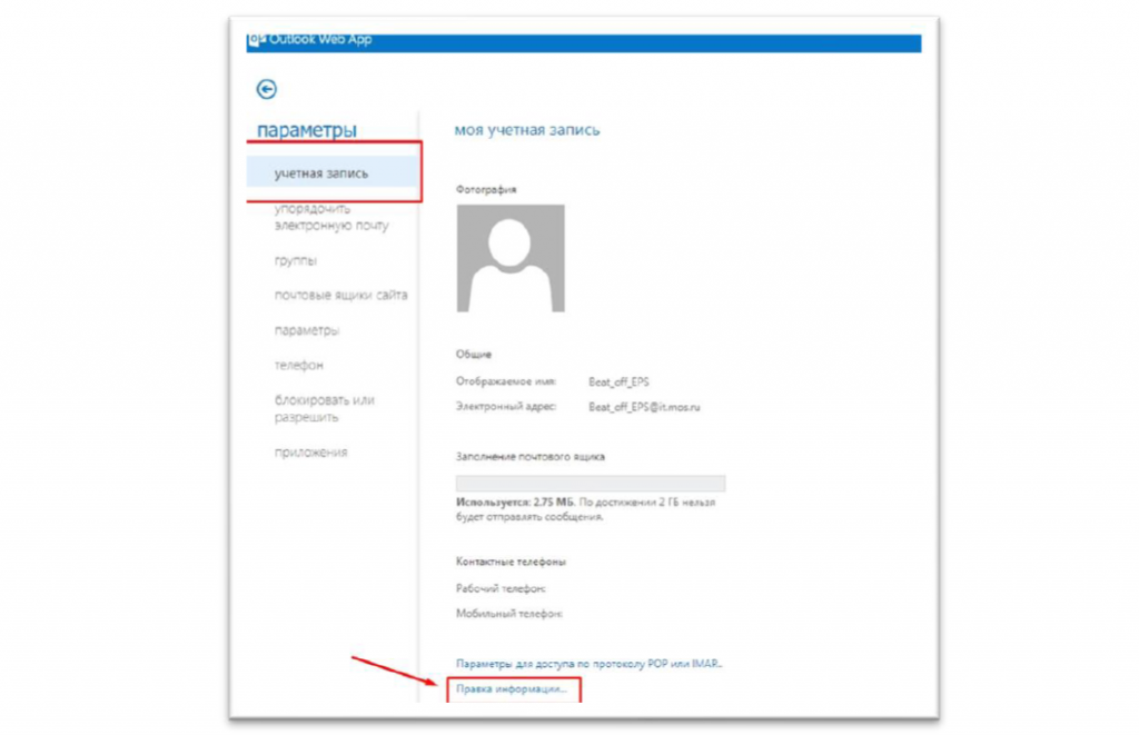 Старый интерфейс owa.mos.ru