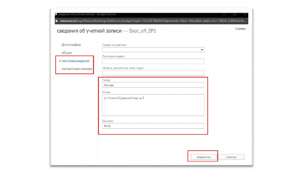 3. Редактируем необходимые атрибуты (те, которые поддаются самостоятельному редактированию, выделены красным цветом) и нажимаем «Сохранить»