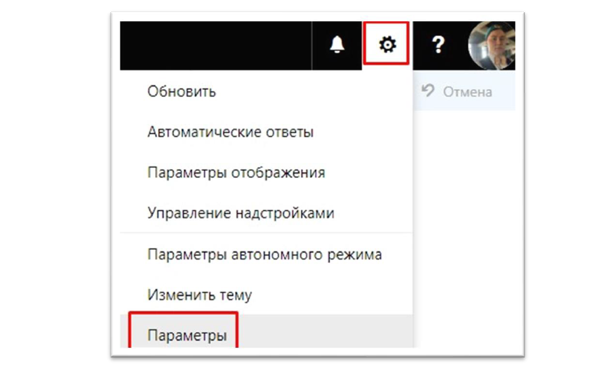 - После прохождения стандартной авторизации, в верхнем углу интерфейса выбираем «Настройки» («шестерёнка») -> «Параметры»