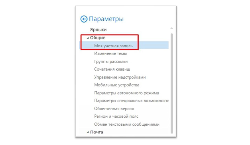 2. По левой стороне страницы выбираем разделы «Общие» -> «Моя учётная запись»