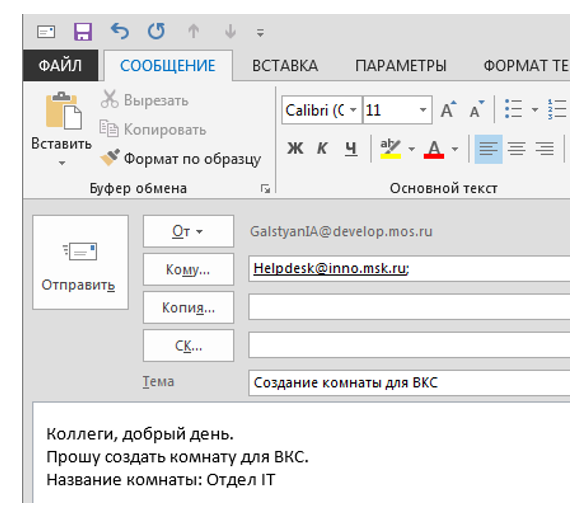 - Для создания отдельной комнаты (пример: Отдел ИТ, Проект Future Tech и т.д.) вам нужно оставить заявку в Отдел IT на helpdesk@inno.msk.ru или hd@inno.msk.ru