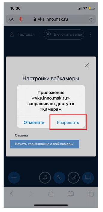 9. BigBlueButton запрашивает разрешение на использование камеры. Нажимаем «Разрешить»