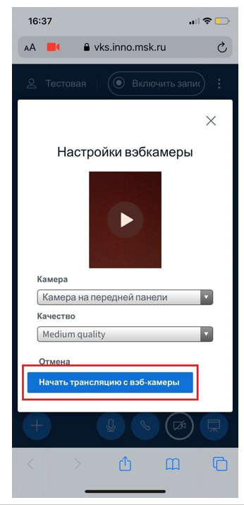 10. Выбираем нужную камеру и нажимаем «Начать трансляцию с веб-камеры»
