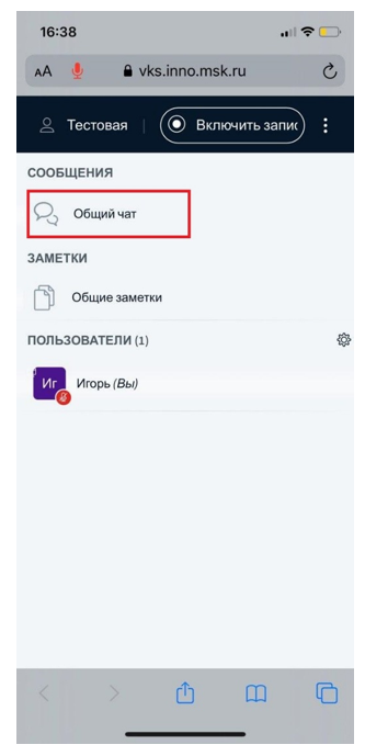 12. Далее нажмите на «Общий чат»