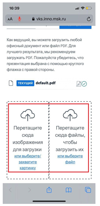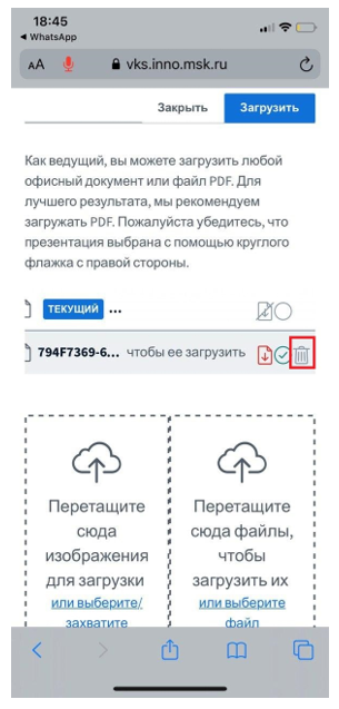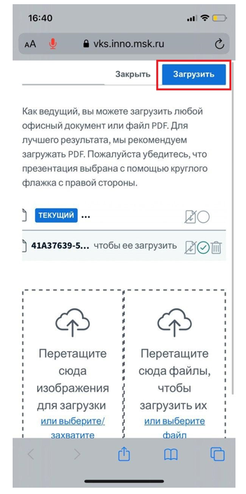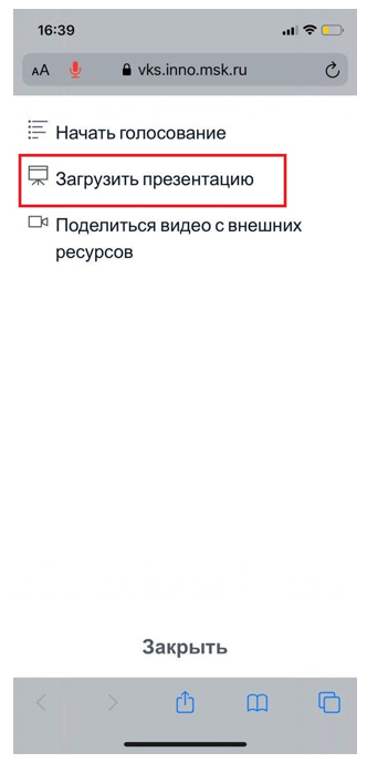 13. Для того, чтобы загрузить презентацию, нажмите на «+» и выберете «Загрузить презентацию»