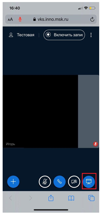 8. Для включения видеосвязи нажмите на значок видеокамеры