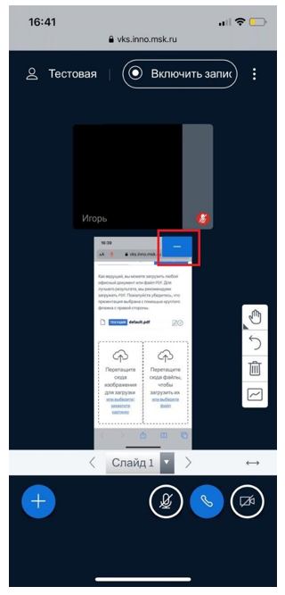 17. Нажмите на «—» в правом верхнем углу презентации, чтобы скрыть ее