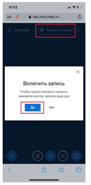 20. Для записи видеоконференцсвязи нажмите на «Включить запись»