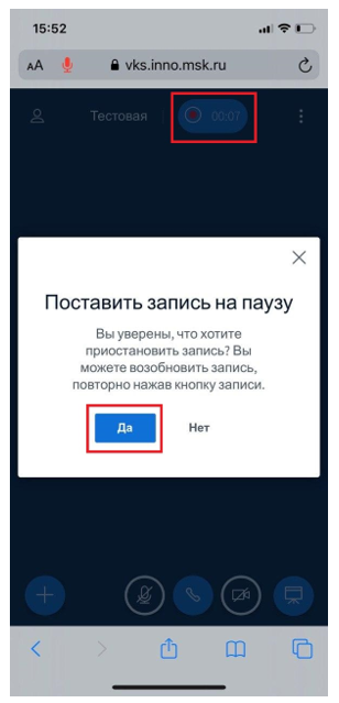 Чтобы поставить запись на паузу, нажмите на «Поставить запись на паузу»