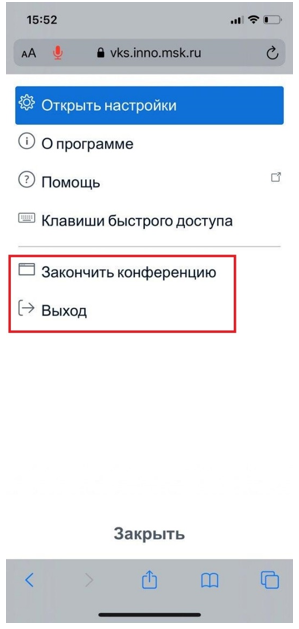 21. Чтобы выйти из конференции, нажмите на «Выход». Если нужно закончить видеоконференцсвязь, нажмите «Закончить конференцию»
