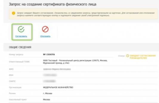 Установить переключатель «Комплект документов на получение сертификата согласован»